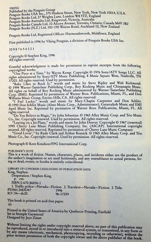 Some copies of the first edition were sold as a package with the book Regulators and a plastic booklight.